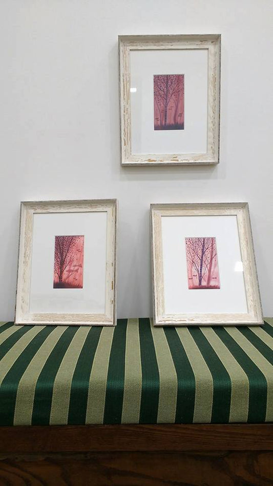 "Alberi in rosa" Acquerello e matita su carta 20x40 cm 2019 con cornice bianca