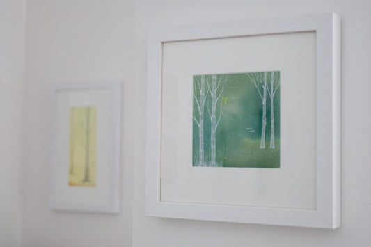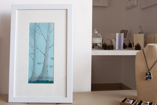 "Bosco" Acquerello e matita su carta 20x40 cm 2019 con cornice bianca