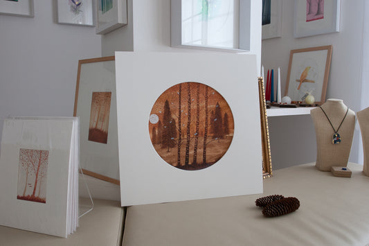 "Notturno silente" Acquerello su carta d 20 cm 2021 con cornice bianca