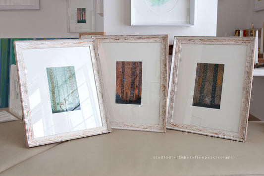 "Nel bosco" Acquerello su carta 18x25 cm 2023 con cornice effetto shabby già compresa