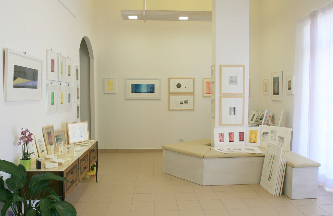 "Allineamenti cosmici" Acquerello su carta 18x24 cm 2023 con cornice bianca