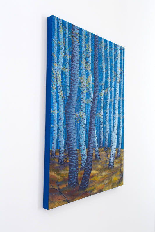 "Bosco dorato" Acquerello e matita su carta 20x40 cm 2019 con cornice bianca